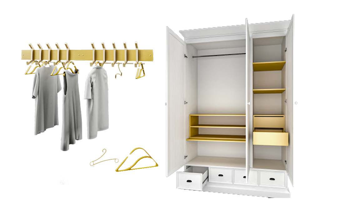 La linea GOLD élite viene realizzata con un materiale brevettato che garantisce protezione antibatterica, anti-corrosione, anti-fungina e anallergica. L’effetto battericida di questo materiale avviene per contatto, quindi è stato integrato nelle superfici interne e sugli appendiabiti (può essere installato anche in mobili già esistenti, trasformandoli così in armadi antibatterici). La collocazione ideale è all’ingresso, per riporre gli abiti e le scarpe che sono stati usati all’esterno e ritrovarli sanificati (e senza odori!) il mattino dopo [zeprojects.it].