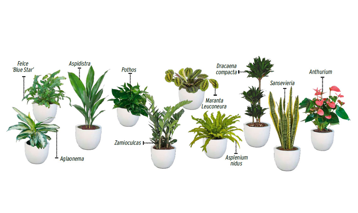Aglaonema. Bella e resistente, può essere collocata anche a 2 o 3 metri di distanza da una finestra. Ci sono varietà screziate di rosa e di rosso come la ‘Spotted Star’ ma la più affidabile è di certo l’Aglaonema ‘Silver Bay’.