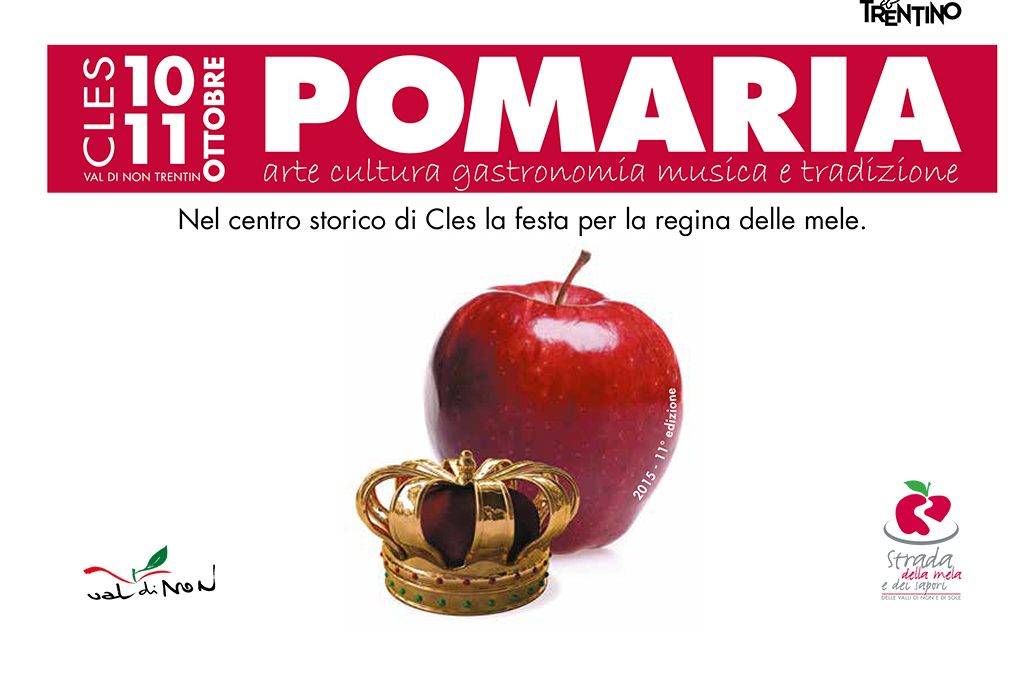 Pomaria 10-11 Ottobre Ingreso libero. Cles (Trento) pomaria.org In occasione della grande festa della mela della Val di Non, le vie del centro del borgo di Casez saranno animate da rappresentazioni di antichi mestieri, musiche, mercatini, mostre pomologiche e degustazioni.