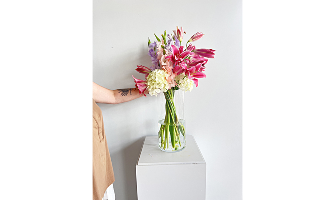 Per la composizione di questo mese voglio provare a risolvere una questione che mi viene posta spesso: cosa mettere in un vaso alto. A volte, infatti, ci ritroviamo in casa dei vasi che non sappiamo come utilizzare, ma i fiori possono offrirci moltissime possibilità. Bisogna essere un po’ curiosi e imparare a conoscerli tutti, che è un po’ la missione di questa rubrica! Scopriremo quindi come creare un mazzo alto, perfetto per un vaso grande. Ho pensato di accostare i gladioli ad altri fiori ‘da giardino della nonna’ come le ortensie e i lilium. I gladioli hanno uno stelo robusto, per cui non sarà facilissimo inserirli in un mazzo. Ma basterà avere la pazienza di provare e riprovare e il risultato arriverà.