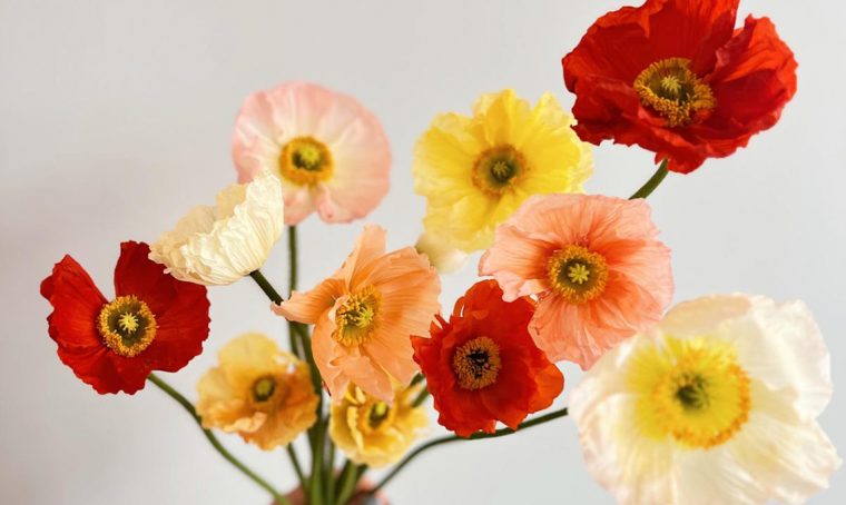 - Quando il risultato ti soddisfa hai due opzioni: legare il mazzo e metterlo nel vaso o inserire i fiori liberi, mantenendo l’ordine creato con la spirale. Nel primo caso avrai un risultato composto, il secondo sarà più arioso.