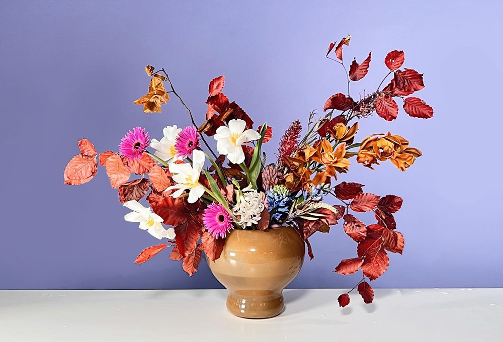 - Infine, ho creato volume con i narcisi ramificati e ho aggiunto dei tocchi di colore con i ranuncoli.
