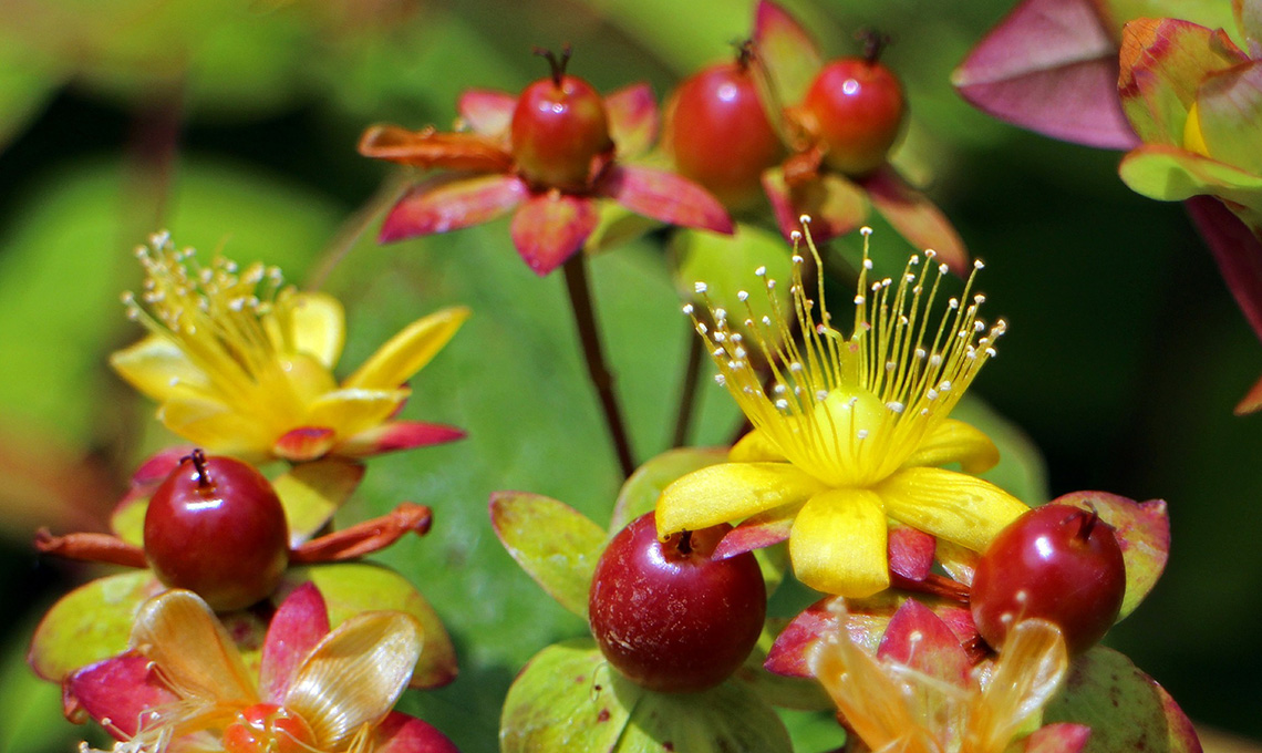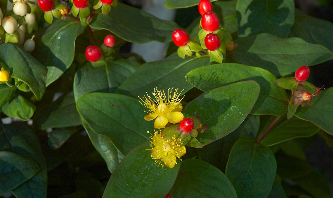 Alcuni ibridi, come Hypericum x inodorum, sono ricercati per le bacche ornamentali, che puoi usare nelle tue composizioni floreali per accompagnare fiori, spighe e ciuffi di fogliame.