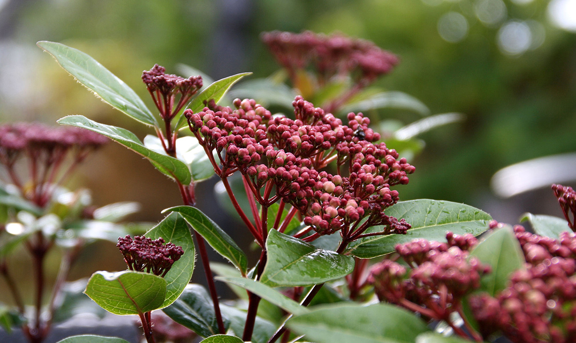 Pianta sempreverde dalla lunga fioritura invernale-primaverile. Produce infiorescenze piatte, formate da una moltitudine di fiorellini bianchi dai boccioli rosati: l’effetto bicolore è molto gradevole. Le bacche bluastre sono la ‘ciliegina’ di una pianta eccellente e versatile, ottima anche come siepe informale dal portamento morbido. Inoltre, il viburno tino produce un fogliame splendido e foltissimo, con foglie non troppo grandi, lucide e lanceolate, color verde tenero da giovani e più scure a maturità. Se devi metterlo in vaso, scegli una cultivar compatta.