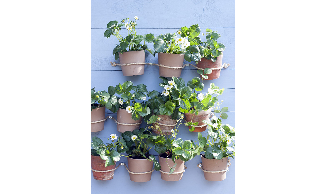 Raggruppa i vasetti con un po’ di fantasia - ho visto fragole bellissime abbarbicate l’una sull’altra in barattoli di latta, appese ai muri, incastrate in bancali di legno e appollaiate sui pluviali - se hai un po’ di manualità puoi creare da te una parete di fragole con corde e tasselli e a fine maggio verrai ricompensato con una prelibata cascata di frutti rossi. Dopo il raccolto taglia foglie e steli vecchi per stimolare la pianta a produrre nuovamente. In commercio si trovano decine di varietà di fragole, anche rifiorenti che producono fino all’autunno, e ibridi molto produttivi, ad esempio Fragaria x ananassa, che produce fiori rosa molto ornamentali e fragole di grande pezzatura. Ora non vi resta che coltivarle, buon divertimento!