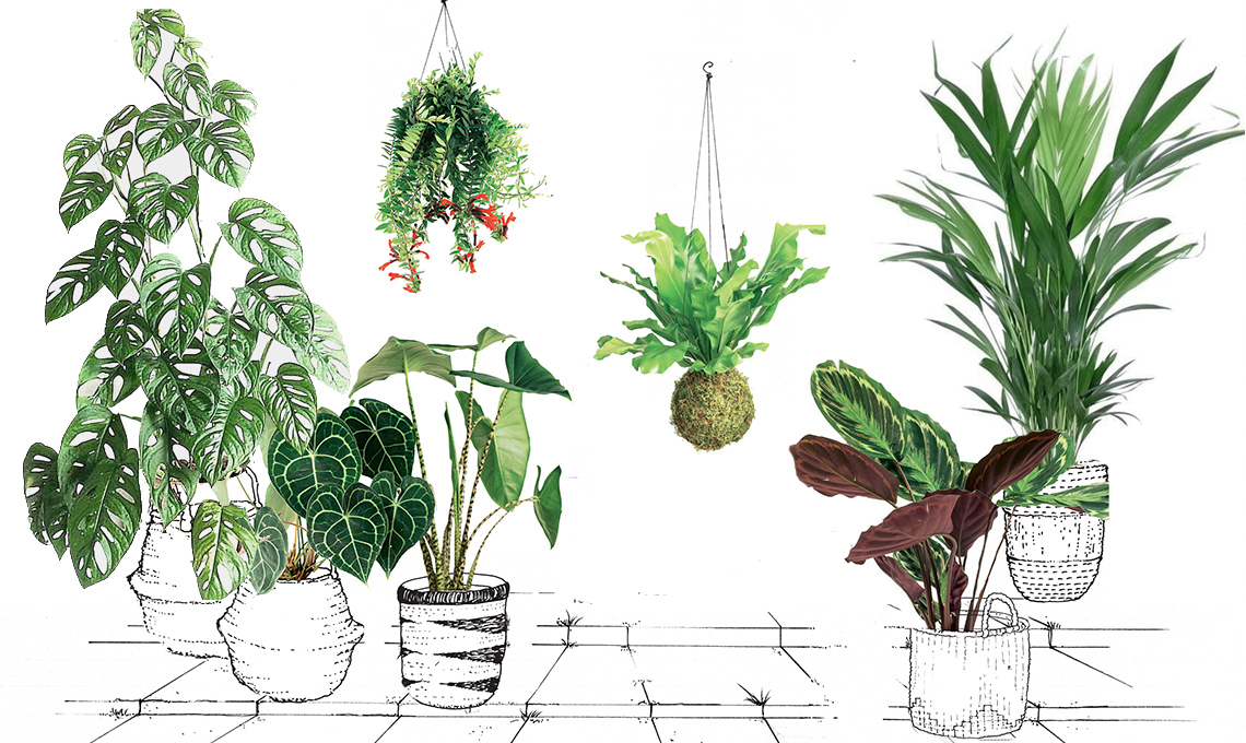 - CALATHEA: oltre a depurare l’aria di casa è conosciuta per le sue colorate foglie che si chiudono al buio; cm 120h.
