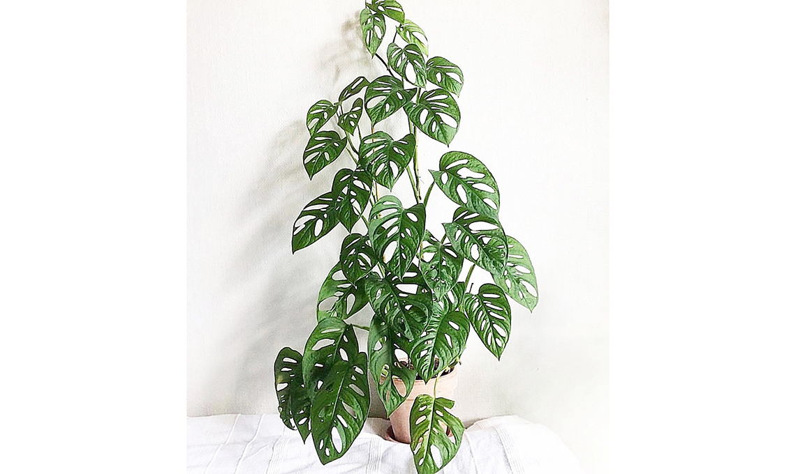 - MONSTERA ADANSONII: ha foglie forate per permettere al sole di raggiungere il terreno che non deve mai essere intriso d’acqua. Facile da coltivare, si arrampica su tutori ma è bella anche ricadente. Alta cm 300h.