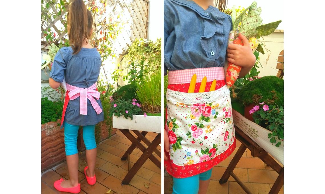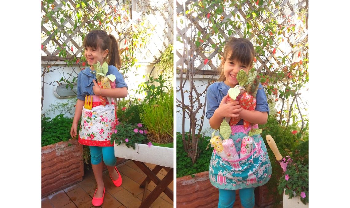 La piccola Olivia, vive in una casa circondata di piante, dove il mood botanico predomina anche all'interno delle mura domestiche. Per lei: paletta, guanti e grembiuli di stoffa a fiori, fatti a mano, realizzati con questo semplice tutorial!