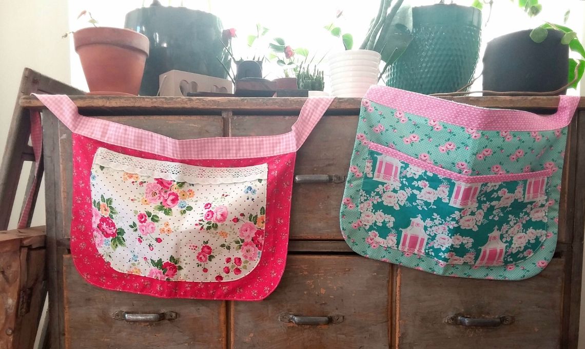 - 2 pezzi di stoffa, cm 35x25 (uno con le rose, altro a tinta unita, per il davanti e il dietro della tasca)