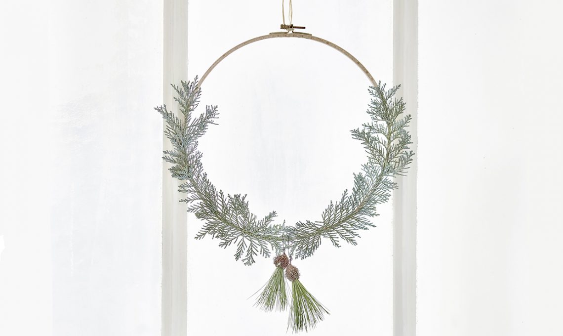Crea la tua ghirlanda verde per Natale, realizzarla è semplice, parti dalla base, puoi anche riciclare vecchi oggetti come un vecchio hula hoop (se la vuoi in formato maxi!) o grucce in ferro e telai da ricamo.