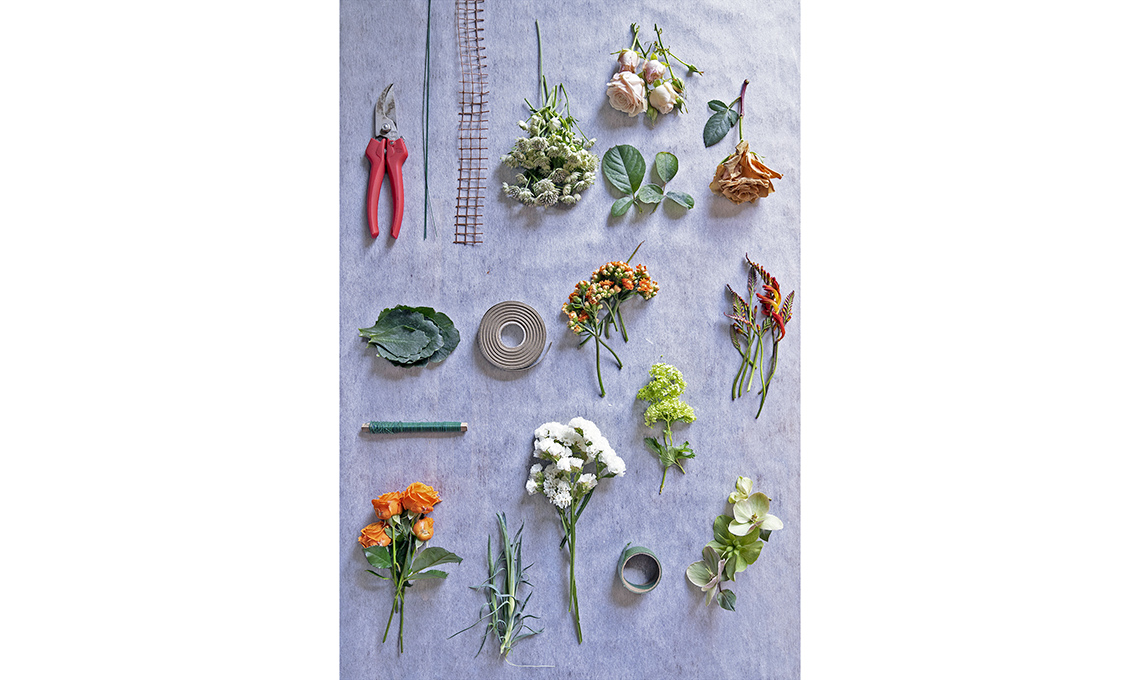 - Qualunque sia la tua base, ora pensa ai fiori: prima di inserirli, appoggiali in fila per decidere l’effetto finale.