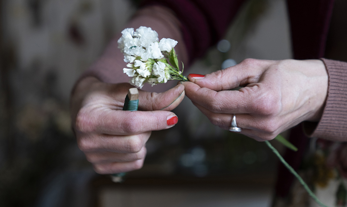 Pionieri della filosofia slow-living quando ancora era semi sconosciuta, Stefania e Marco nel 2012 hanno deciso di dedicarsi totalmente a Bici e Radici, che è un negozio, ma anche uno spazio dove ricevere consigli, scambiare conoscenze, bere un caffè, acquistare creazioni insolite: come la Lampagrassa, una pianta che vive in un fanale di bicicletta, o un Fior fior di copertone, una composizione... su gomma! Non mancano poi gli eventi social, come gli ‘attacchi urbani’ a suon di verde e muschio, per tappare le fastidiosissime buche milanesi, e le biciclettate in campagna per raccogliere fiori con cui fare bracciali o corone come quella che Stefania ci insegna qui.