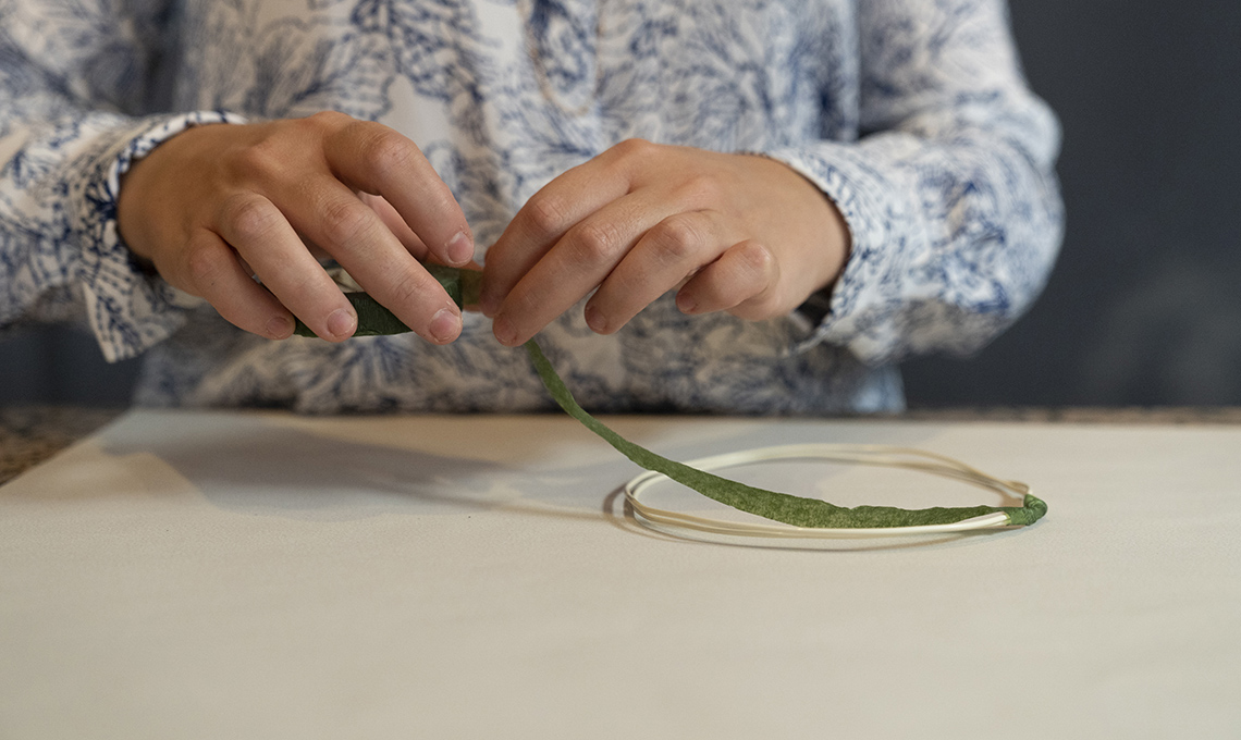 - Chiudi il filo di alluminio con le pinze (non serve una chiusura impeccabile, perché lo rivestirai con la guttaperca, che darà stabilità e una miglior presa per inserire i fiori).