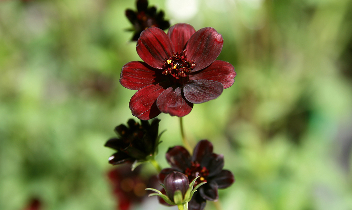 Esiste una specie particolare di Cosmos, il Cosmos atrosanguineus, una specie caratterizzata da fiori vellutati color amaranto, a volte quasi neri, e con un portamento che si assesta sui 40-60 cm. Ma la vera particolarità è il profumo del fiore, che ricorda in tutto e per tutto quello del cioccolato.