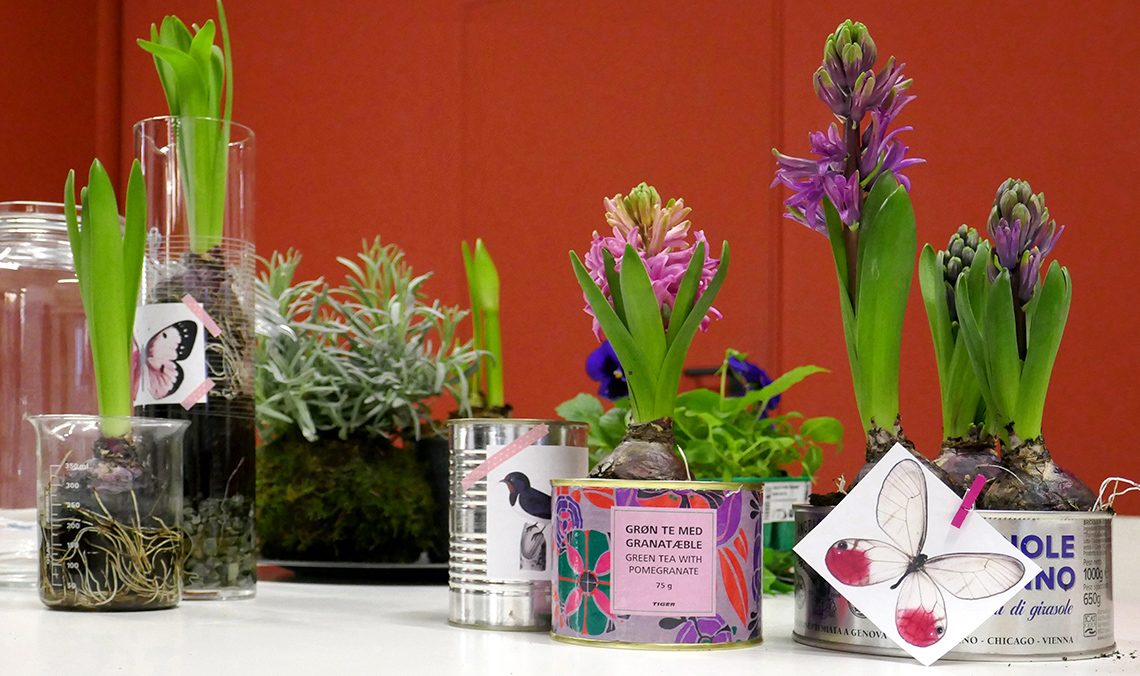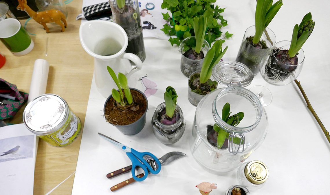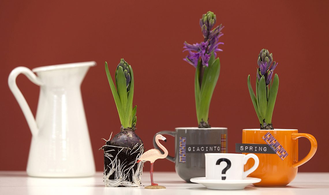 Recupera dei contenitori, metti sul fondo un po’ di ghiaia per favorire il drenaggio e aggiungi uno strato di terra. Quindi inserisci nel nuovo cachepot il bulbo con il suo pane di terra e innaffia fino a raggiungere solo la parte inferiore del bulbo. Ora, se vuoi, personalizzalo con delle etichette colorate e magari aggiungi la miniatura di un animale (il fenicottero è ancora di gran moda!).