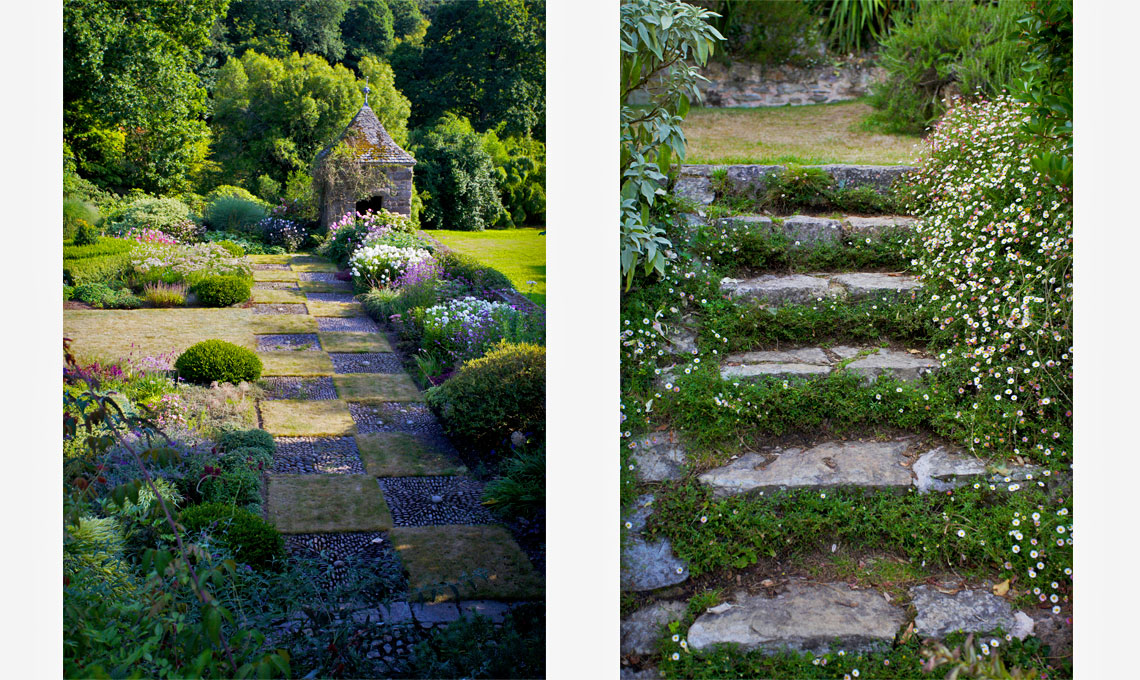 La soluzione per realizzare le pavimentazioni, che consiste nell’utilizzare sassi e pietre seguendo un preciso disegno geometrico oppure sistemate in apparente disordinata. A Kerdalo infatti è celebre il camminamento a scacchiera costituito dall’alternanza di quadri d’erba e di galets (ciotoli di fiume).