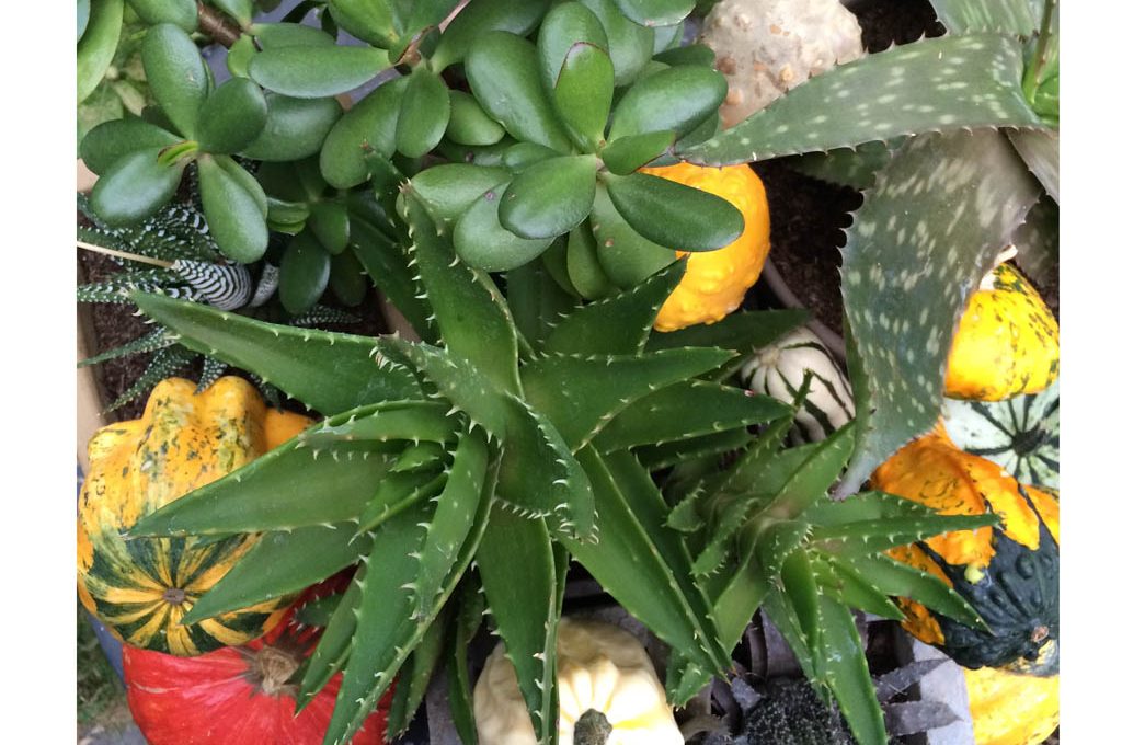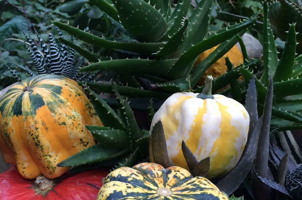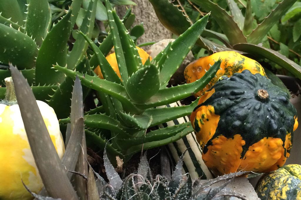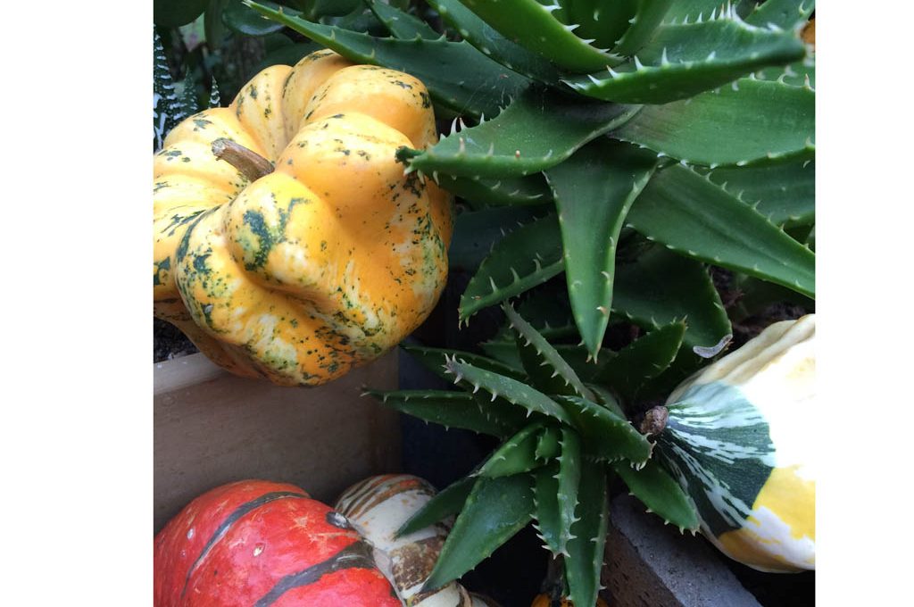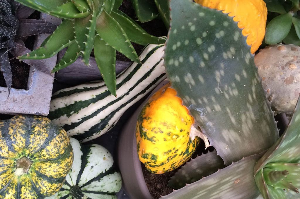 . Le zucche decorative stanno bene anche appoggiate "distrattamente" accanto alle piantine che hai sul davanzale o in mezzo alle piante grasse! Bitorzolute e spinose, vanno a braccetto!