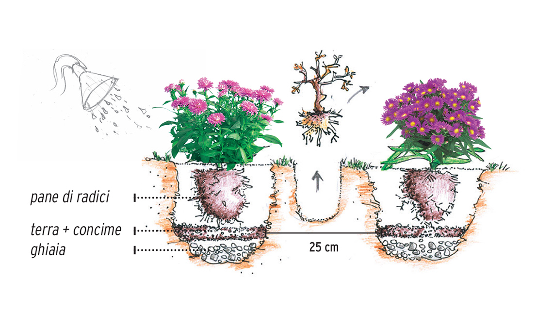 Vuoi sostituire la piante secche? Rimuovile e fai accanto una nuova buca, per avere un terreno più rigenerato, quindi inserisci la nuova pianta. Ricopri con terra e concime fino al colletto e bagna in abbondanza nei primi giorni.