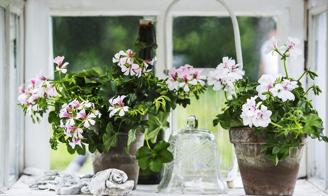 - Gerani edera (P. x hederaefolium o P. peltatum) e i loro ibridi sono perfetti se collocati nei vasi sospesi. Possono però anche crescere a mo’ di rampicanti se correttamente supportati da una griglia.