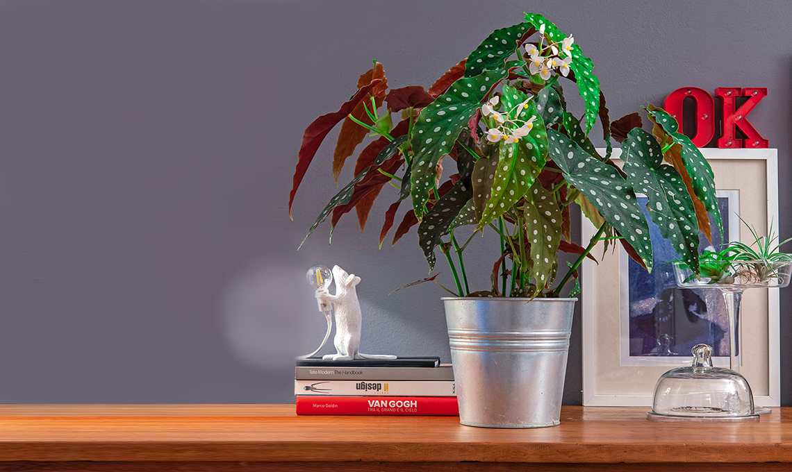Ama gli ambienti un po’ umidi come il bagno, ma non tollera troppa acqua né tantomeno il secco. Necessita di una buona quantità di luce per produrre fusti robusti e fiori, ma attenzione alle foglie: si rovinano se prendono il sole diretto! La posizione ideale è quindi in prossimità di una finestra che sia schermata da una tenda bianca. S.O.S. La tua begonia perde le foglie? I problemi possono essere due: troppa umidità o temperature basse.