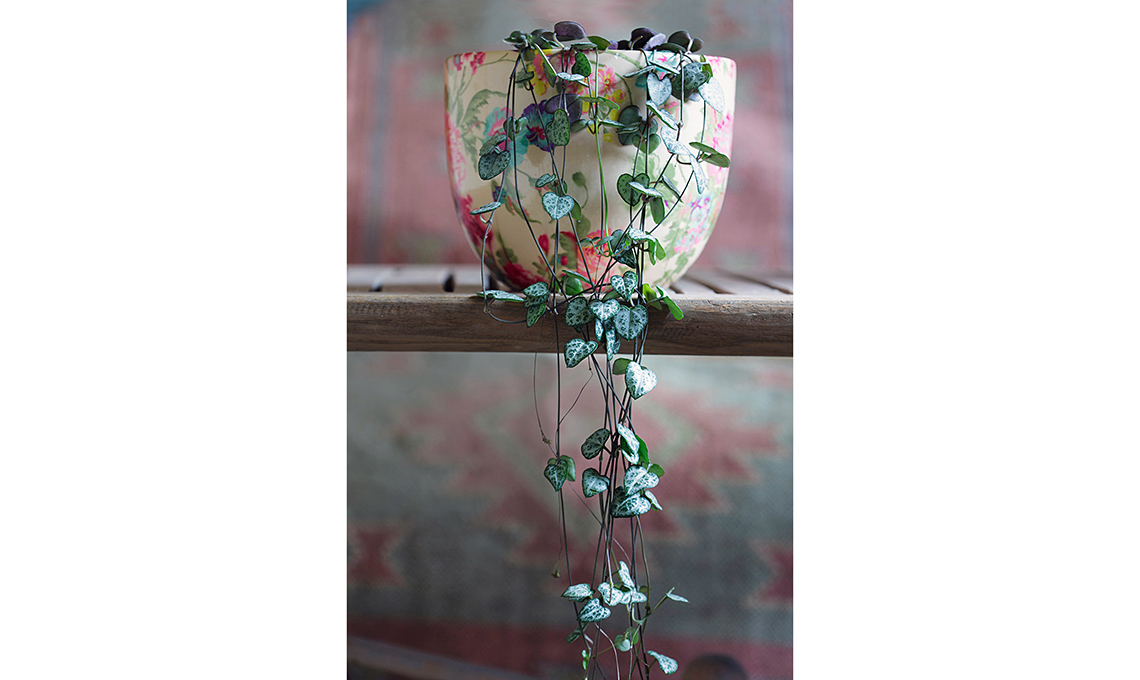 Le piante ricadenti non sono mai abbastanza: permettono composizioni sempre nuove, ‘volanti’ nei vasi sospesi o appoggiati sui ripiani alti delle librerie. E questa varietà di Ceropegia è molto stilosa e facile da coltivare; si distingue nel mare magnum delle piante da interno per le piccole foglie carnose e cuoriformi, portate con eleganza su fusti sottili, una peculiarità che la rende nota col nome di ‘collana di cuori’.