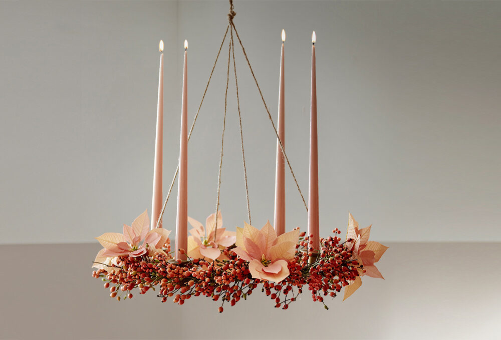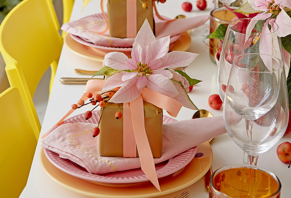 - Togli la poinsettie rosa mignon dal vasetto e avvolgi il pane di terra con il muschio fresco, quindi crea una sfera.