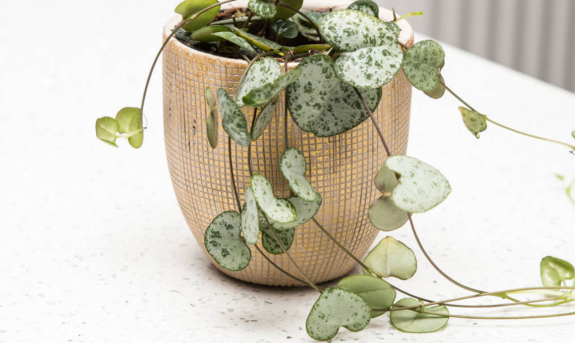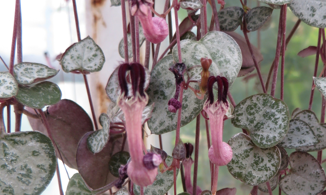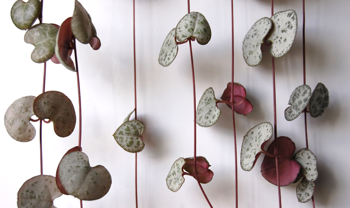 La cosiddetta "Collana di cuori" (Ceropegia woodii) è adatta per essere coltivata in vasi sospesi o sulle mensole della libreria per consentire ai suoi lunghi rami di crescere liberi raggiungendo spesso oltre il metro di lunghezza.