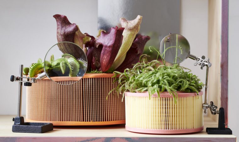 - piccole e dal portamento compatto con una crescita lenta adatta allo spazio ristretto in cui sono, come Ficus pumila, falangio, peperomia;
