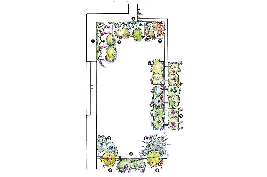 1. Se ha l'esigenza di avere più privacy o di schermare una zona dal sole e di mantenere tutto più fresco, ti consigliamo di coltivare dei rampicanti con tutori in vasi capienti e traspiranti come quelli di coccio. Ecco alcune piante che amano il sole (vedi disegno nella gallery):