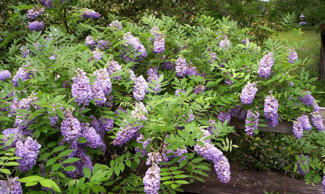Ci sono varietà originarie dell’America che ‘saltano’ la fioritura d’aprile. I loro fiori, più piccoli di quelli orientali e dal profumo speziato, iniziano a sbocciare a fine maggio. Si fermano con il grande caldo e, in buone condizioni climatiche (temperature fresche e poco vento), a settembre rifioriscono un po’. Si tratta della Wisteria frutescens Amethyst Fall, la Wisteria frutescens Longwood Purple e la Wisteria frutescens Nivea.