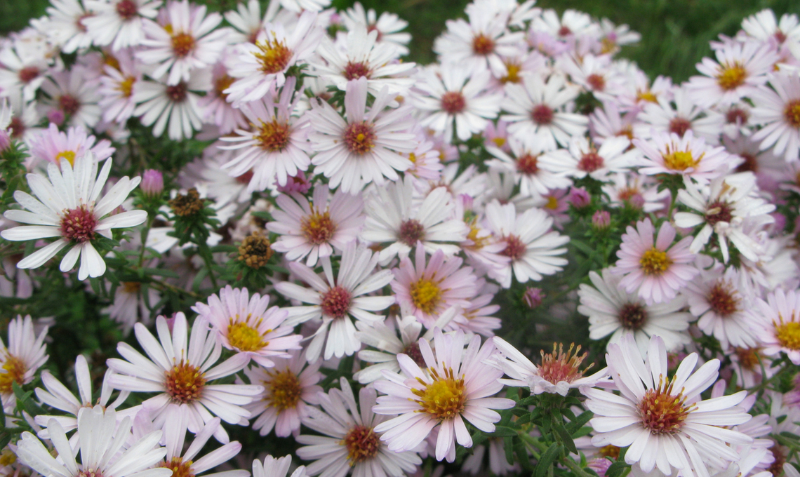 Da lontano i fiori degli Aster (o astri) sembrano miriadi di piccole stelle: azzurre, rosa, bianche, viola, ciascuna con il suo bottoncino giallo al centro.