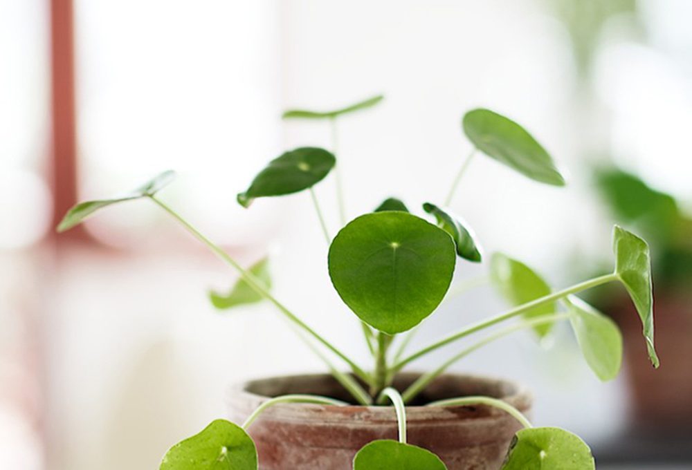 - La pilea ha la foglia tonda, lucida con lunghi piccioli che partono dal fusto centrale.