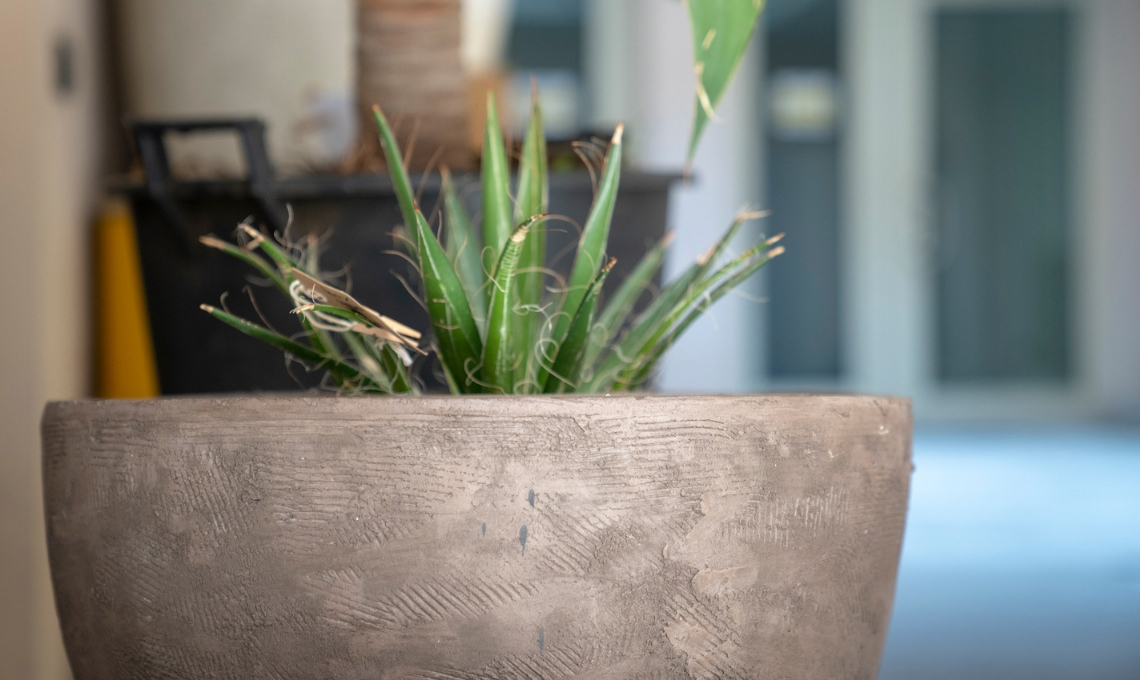 Infine, se lo stile della casa è più nordico e minimalista, sono perfetti i vasi in vetro valorizzati da un originalissimo sottovaso ricavato da una sezione di tronco d’albero, oppure vasi dai colori neutri, in polystone, materiale che combina la leggerezza della plastica e l’aspetto poroso del cemento.