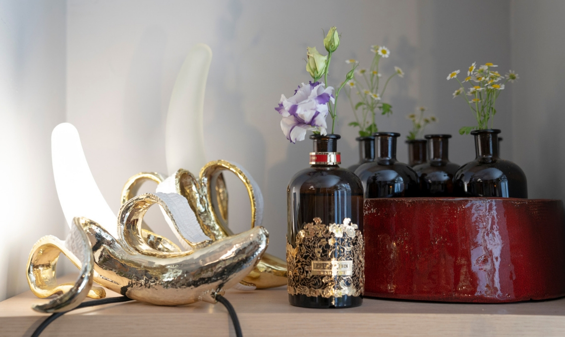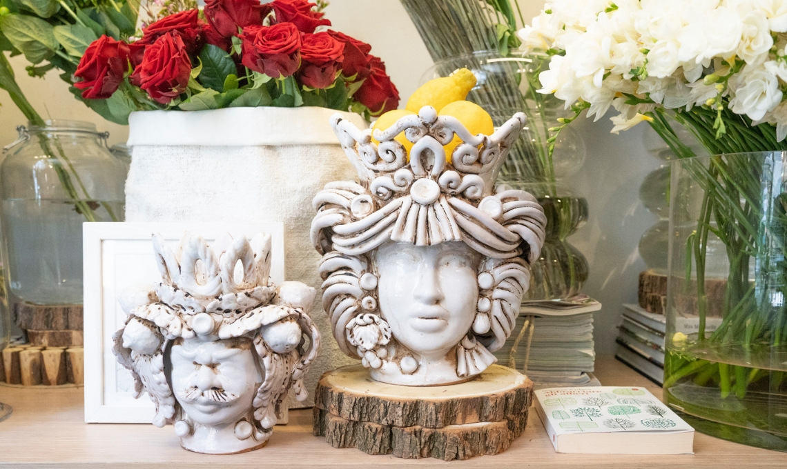 Le teste di Moro e Malandrina, ad esempio, sono realizzate a mano da un’artigiana italiana, Germana Scapellato, che ha voluto rendere contemporanee le famose sculture tipiche della tradizione siciliana. Si contraddistinguono per i loro connotati esuberanti, nero per i baffi di Moro e rosso per le labbra di Malandrina.