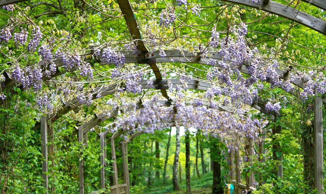 Il pergolato di glicine sarà al suo massimo splendore in primavera quando fiorisce. È una pianta resistente che può sopravvivere per qualche decennio se coltivata in piena terra. Richiede di essere potata, per eliminare i rami più vecchi, in estate e in inverno.