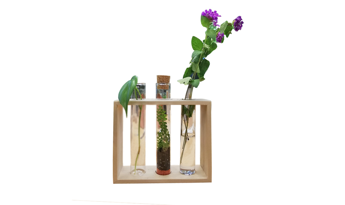 - Con la carta vetrata leviga i fori. Incolla i 4 listelli formando una cornice, lascia asciugare bene e poi inserisci le fialette.