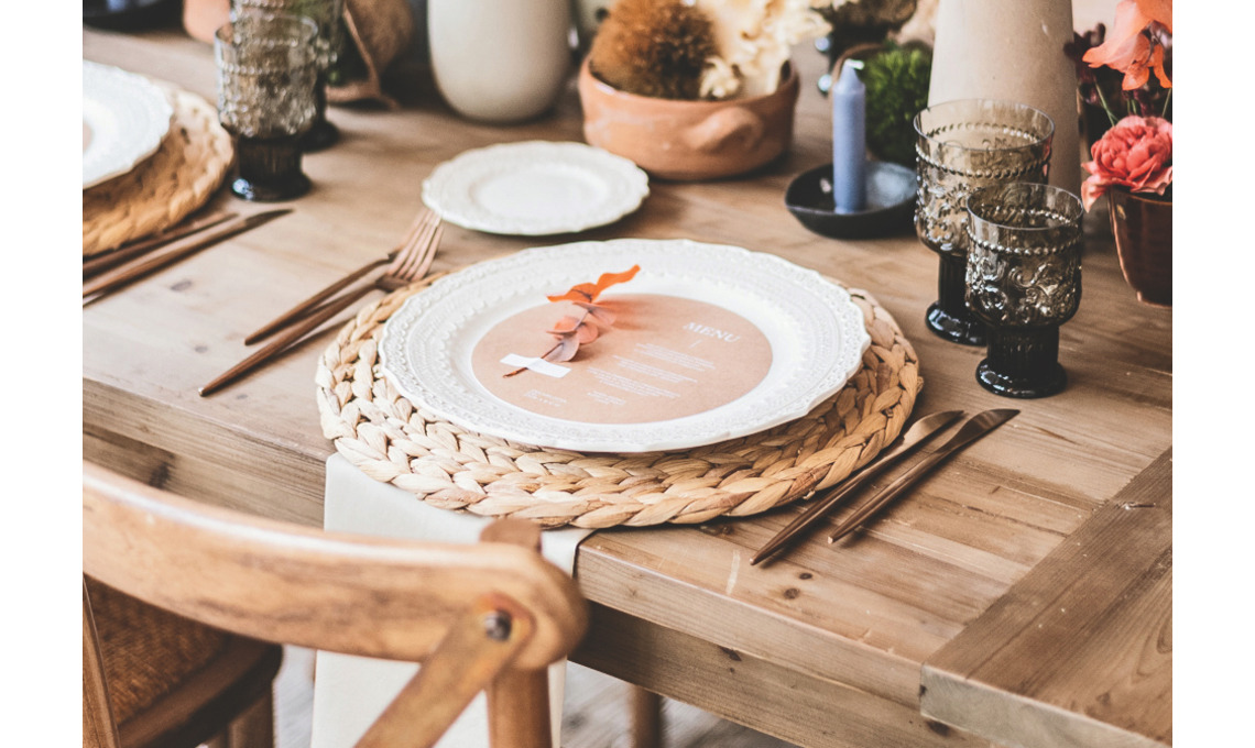 Ispirandomi a questo stile rustico e al contempo estremamente sofisticato, ho ideato una tavola in mood champagnard, che rievoca le sensazioni morbide e calde tipiche della stagione autunnale.