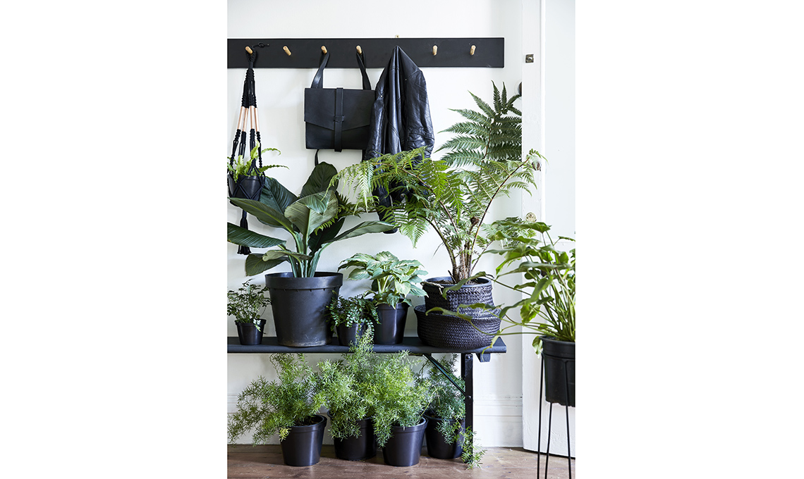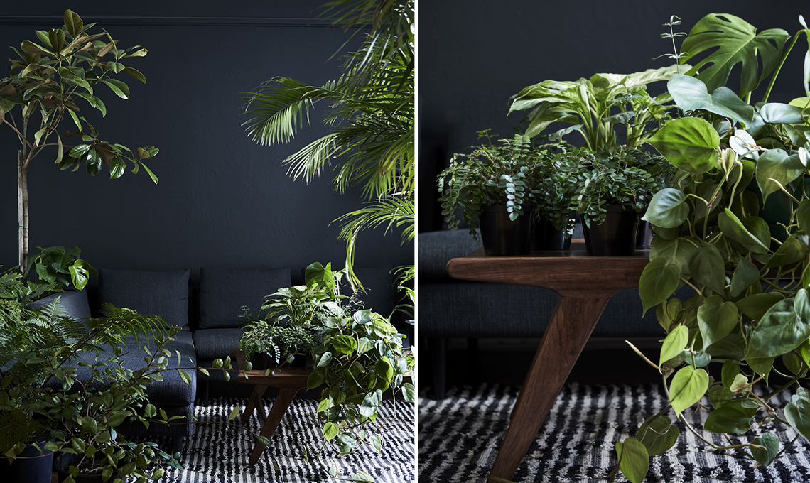 Perché decorare una parete di nero? Semplice, è uno sfondo così elegante da enfatizzare il verde delle piante!