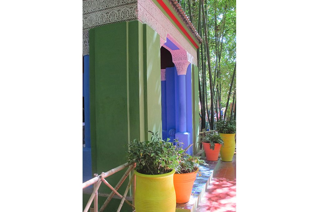 dal tipico rosso marocchino e affiancati da colorati vasi in terracotta, per raggiungere il piccolo Museo di Arte Islamica e lo shop -imperdibile- dedicato al grande couturier francese.