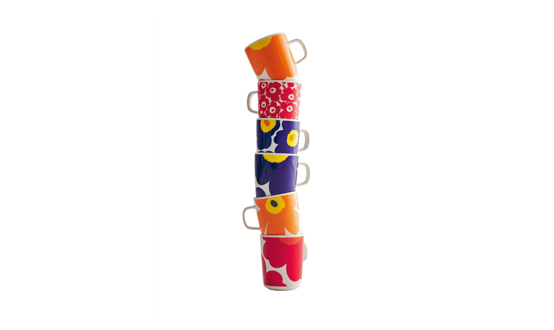 Maija Isola, in polemica con il fatto che le veniva detto che cosa poteva o non poteva disegnare, ne schizzò subito alcuni e tra questi c’era proprio Unikko. Semplice, libero e colorato, divenne immediatamente un successo, in perfetta sintonia con lo spirito dell’epoca del ‘Flower Power’.