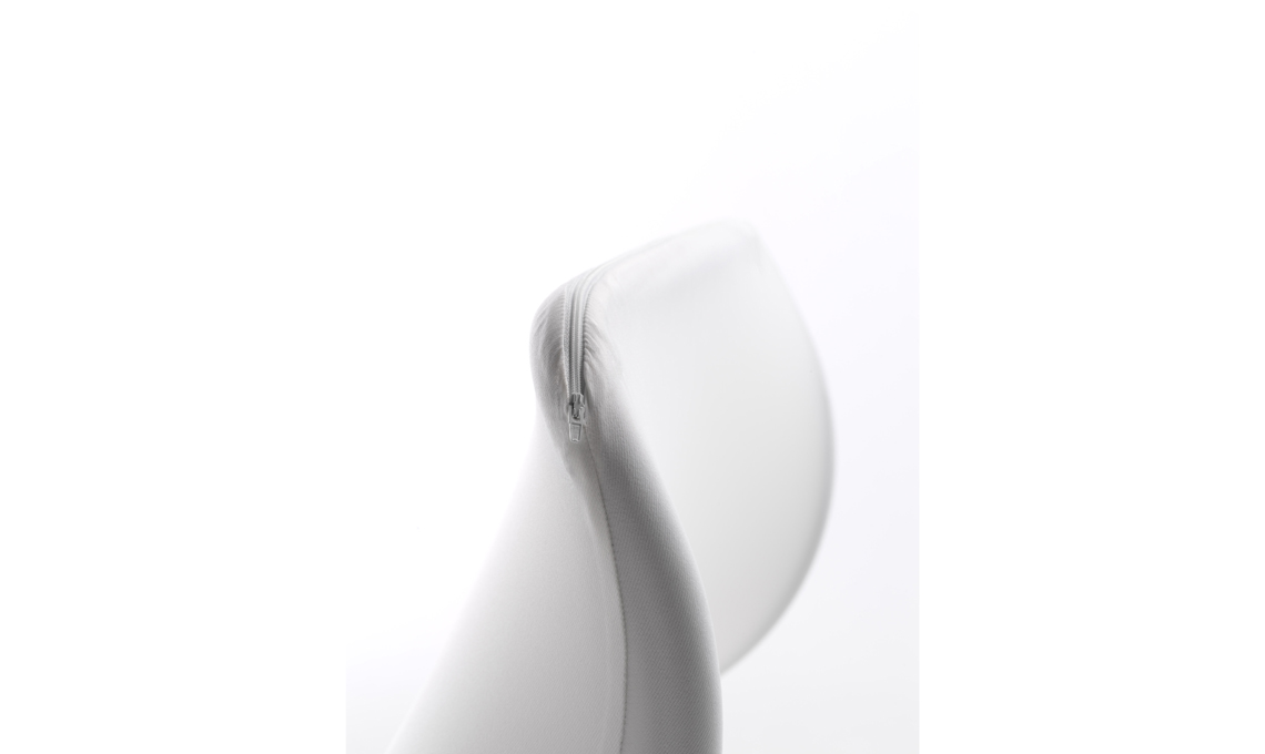 Frontalmente svela la sua funzione e comodità grazie al tessuto elastico, tenuto in tensione dalla struttura, che avvolge ergonomicamente il corpo per poi tornare nella posizione originaria una volta che ci si alza. Fiocco riflette alla perfezione l’irriverente spirito degli Anni ’70, trasformando una provocazione – l’accomodarsi sospesi nell’aria – in un lavoro di sintesi verso l’essenziale, sperimentando con le possibilità dei nuovi materiali dell’epoca, come il tessuto elasticizzato, impiegati nel mondo degli arredi. Con le sue maxi dimensioni riempie lo spazio senza occuparlo e, come la vela di prua da cui prende il nome, ci fa navigare tra le onde del design radicale Anni Settanta.