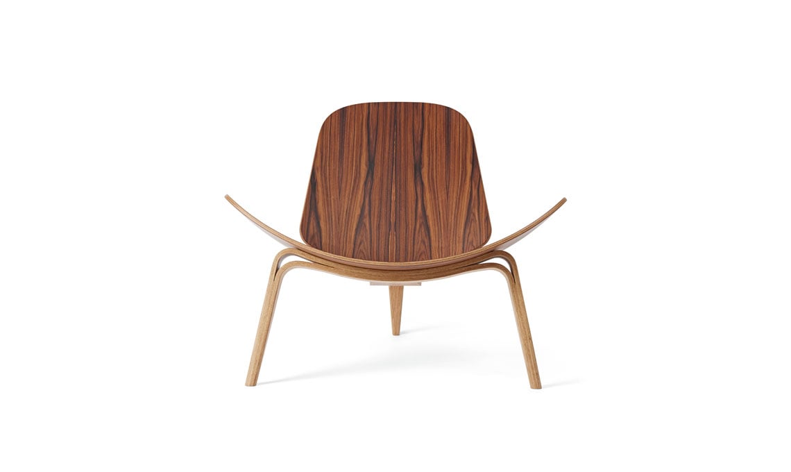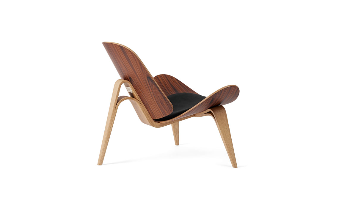 Anniversario. Per festeggiare i 60 anni della Shell Chair, l’anno scorso è stata realizzata una preziosa nuova edizione in legno di palissandro e rovere, essenze tipiche del design danese degli Anni ’50 e ’60. Sul retro, una targhetta in ottone riporta l’anniversario e la firma incisa del designer.