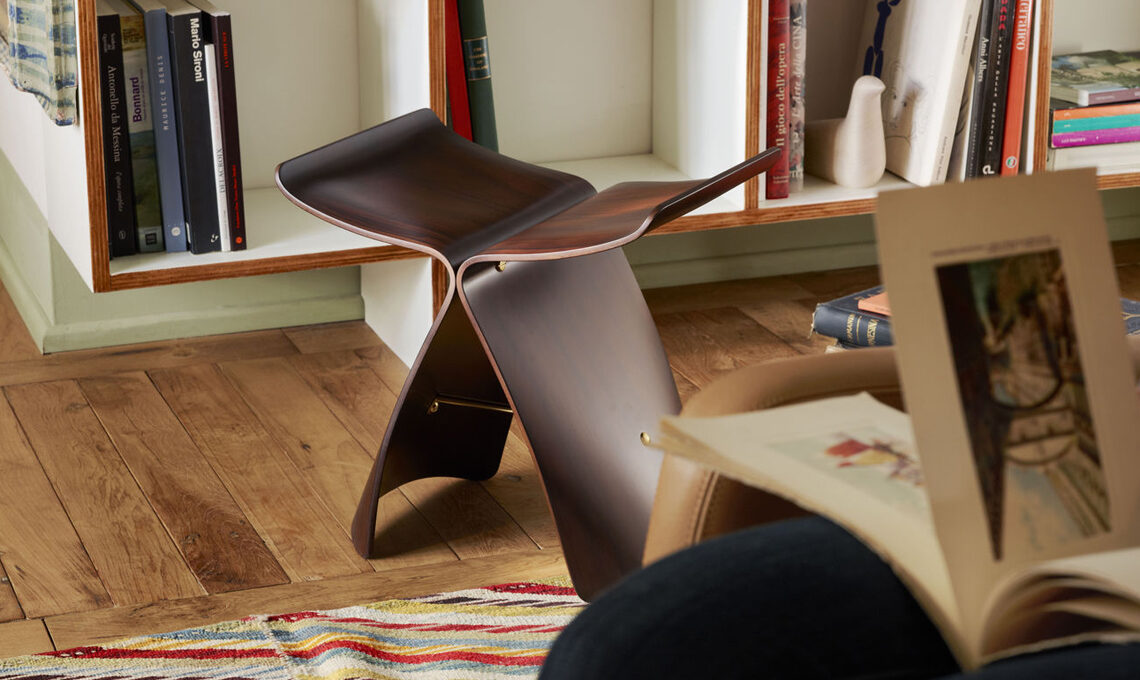 Butterfly è il magico incontro tra la bellezza e l’essenzialità giapponese e le sperimentazioni sulla curvatura del multistrato condotte negli anni precedenti da Charles e Ray Eames, Arne Jacobsen e altri. È formato da due fogli speculari, bloccati da un tirante e viti. E se si pensa agli anni della sua ideazione, poco dopo la seconda guerra mondiale, Butterfly è icona e simbolo della fiduciosa ripresa giapponese.
