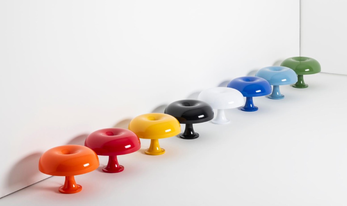 Prodotta da Artemide dal 1967, è entrata nella collezione permanente del Moma di New York. È una delle prime lampade realizzate in resina ABS. I colori iconici? Arancione e bianco