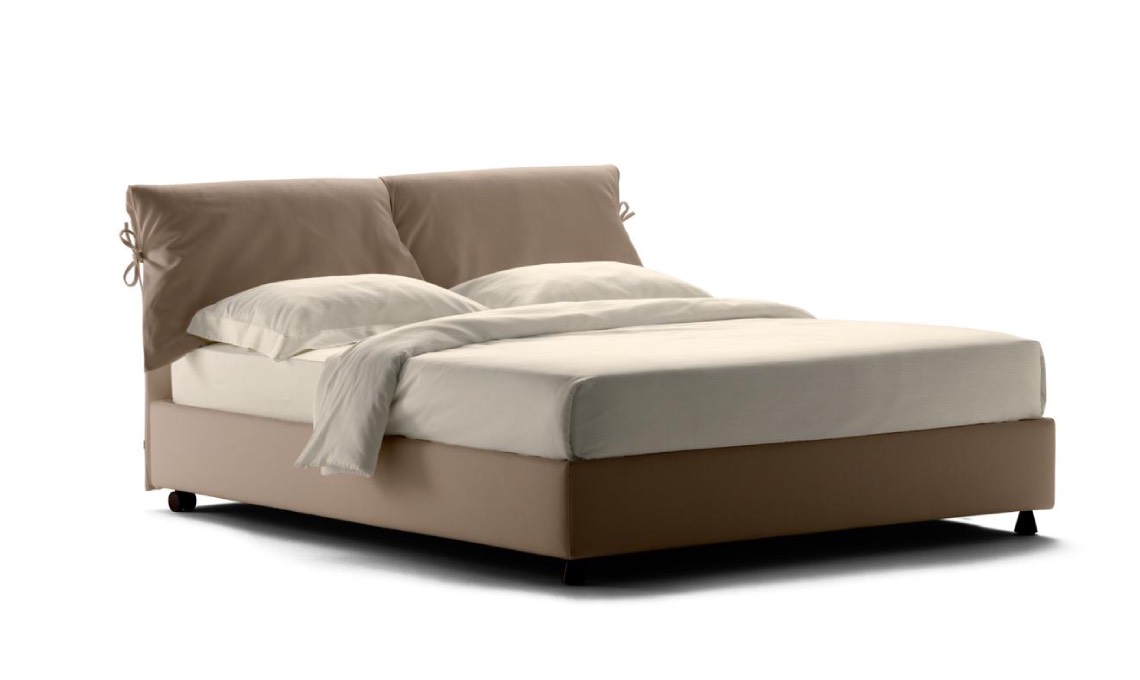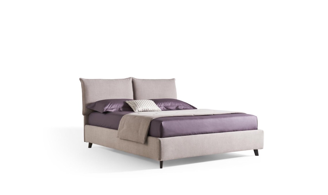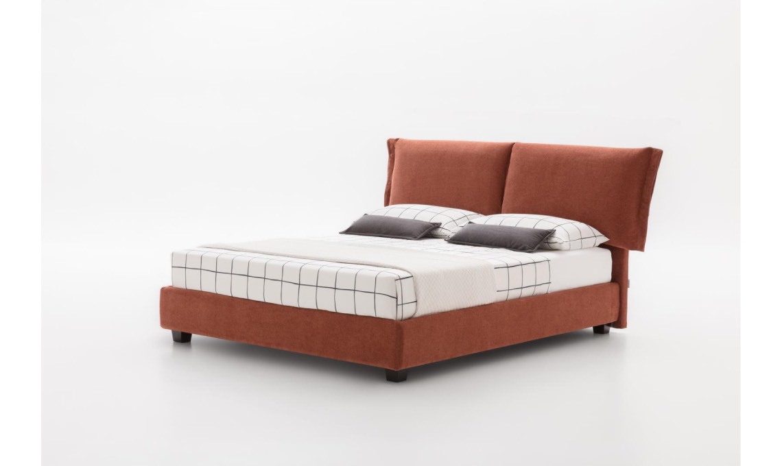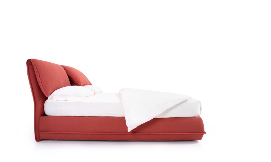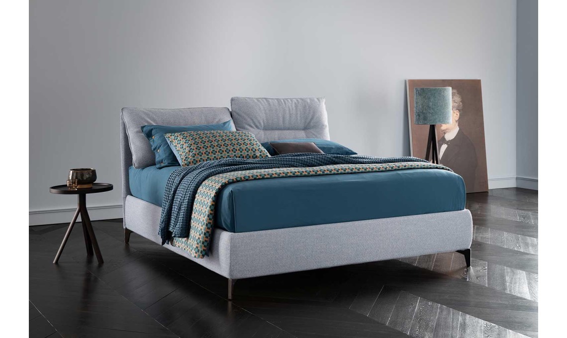 Si tratta del primo modello imbottito e ‘vestito’: ti avvolge come un piumone che risale fino sulla testata diventando cuscino; di giorno nasconde i guanciali, di sera offre sostegno al relax e alla lettura.