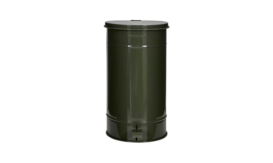 4. Rafa (30 litri) è in metallo verniciato a polvere verde oliva satin [Westwing, ø cm 33x66h].