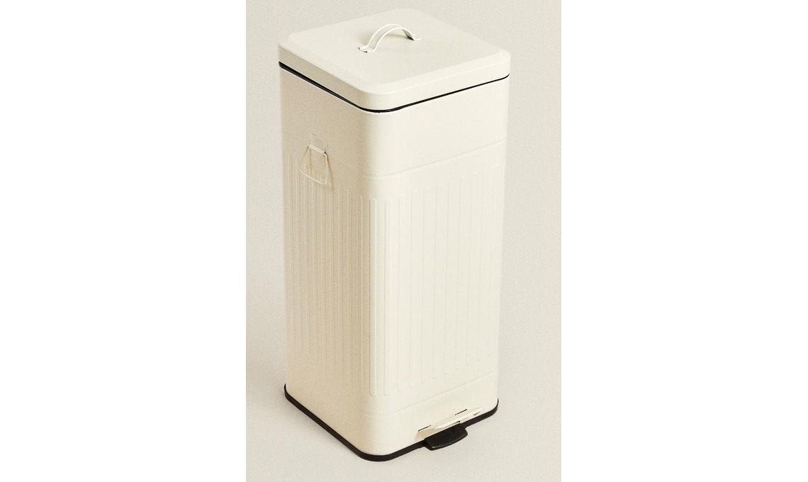 8. Pattumiera da 30 litri in acciaio smaltato crema [Zara Home, cm 27x27x64].