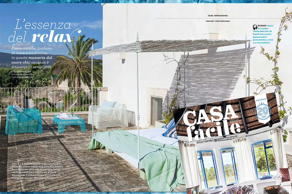 “One Lazy Morning” Brett Anderson - “Sinking Deep” Fanny De Aguiar - Ispirazione. L’essenza del relax. Pietre antiche, profumi mediterranei e tradizione. In questa masseria, dal cuore chic, vacanza è sinonimo di semplicità