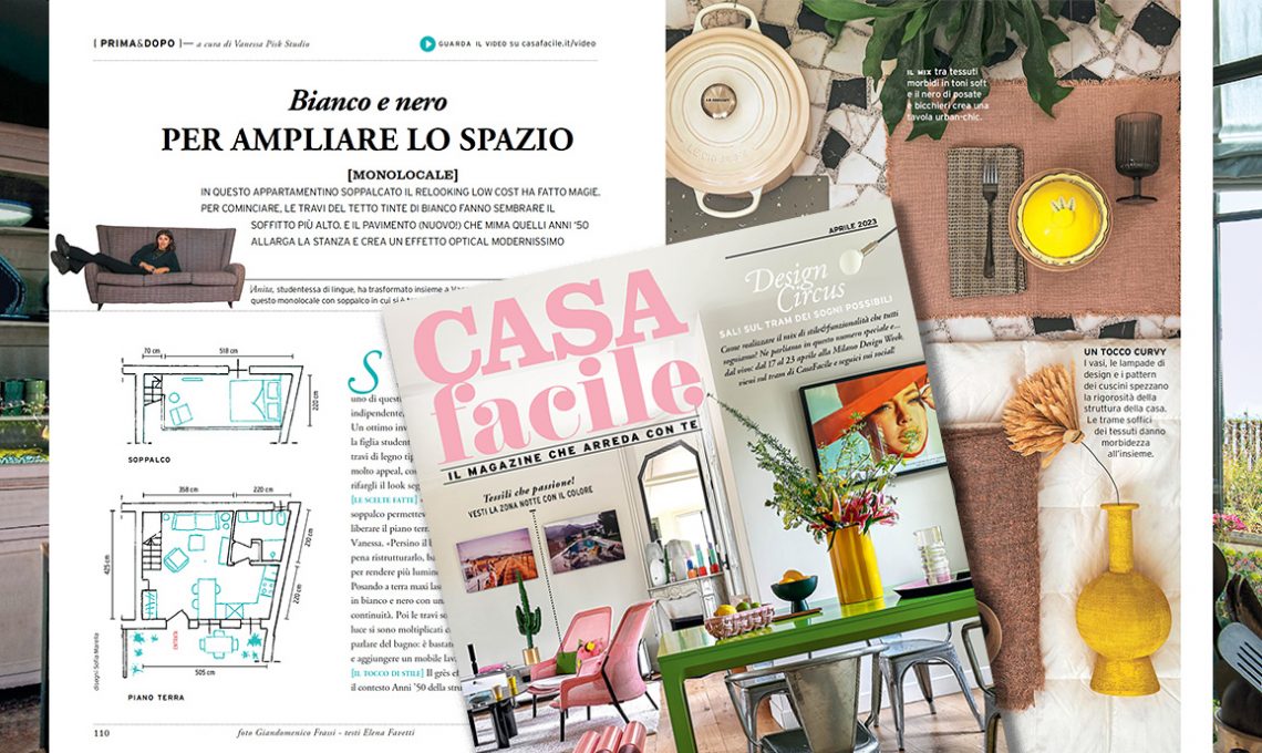 Bianco e nero per ampliare lo spazio del monolocale in città, con soppalco e giardino