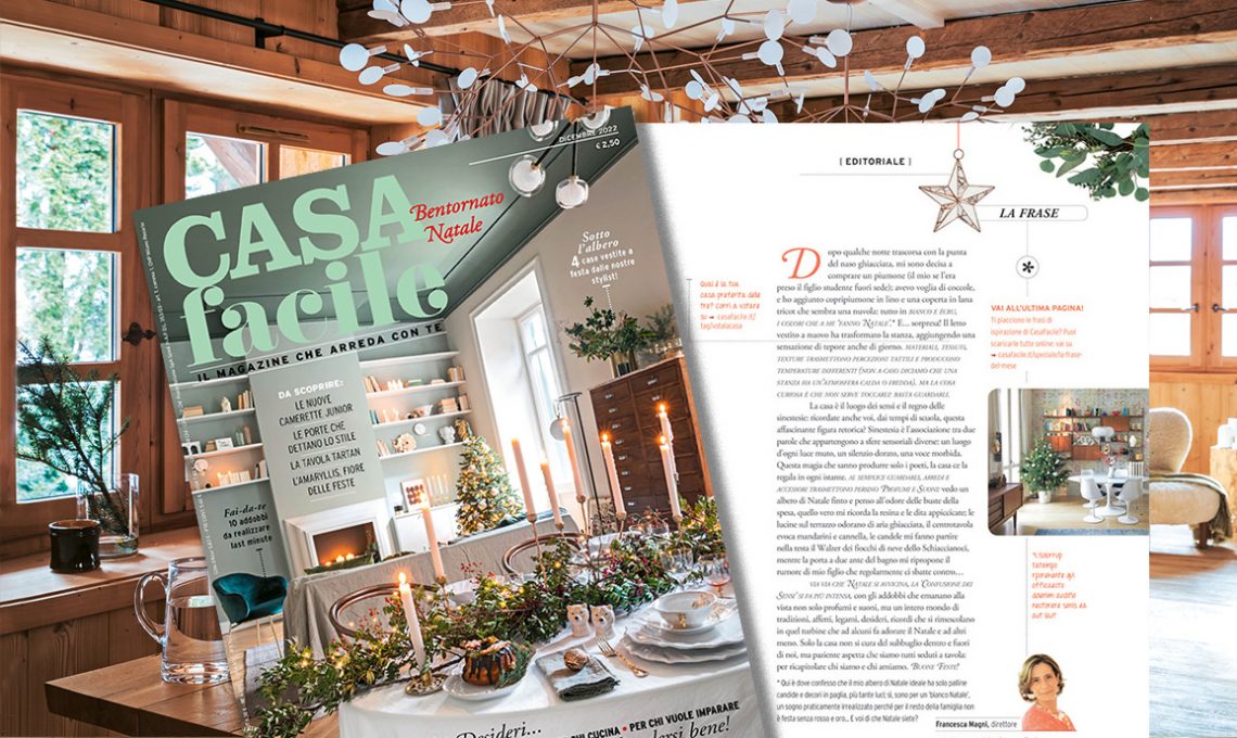 La casa è il luogo dei sensi e il regno delle sinestesie: ricordate anche voi, dai tempi di scuola, questa affascinante figura retorica? Sinestesia è l’associazione tra due parole che appartengono a sfere sensoriali diverse: un luogo d’ogni luce muto, un silenzio dorato, una voce morbida. Questa magia che sanno produrre solo i poeti, la casa ce la regala in ogni istante. Al semplice guardarli, arredi e accessori trasmettono persino profumi e suoni: vedo un albero di Natale finto e penso all’odore delle buste della spesa, quello vero mi ricorda la resina e le dita appiccicate; le lucine sul terrazzo odorano di aria ghiacciata, il centrotavola evoca mandarini e cannella, le candele mi fanno partire nella testa il Walzer dei fiocchi di neve dello Schiaccianoci, mentre la porta a due ante del bagno mi ripropone il rumore di mio figlio che regolarmente ci sbatte contro...